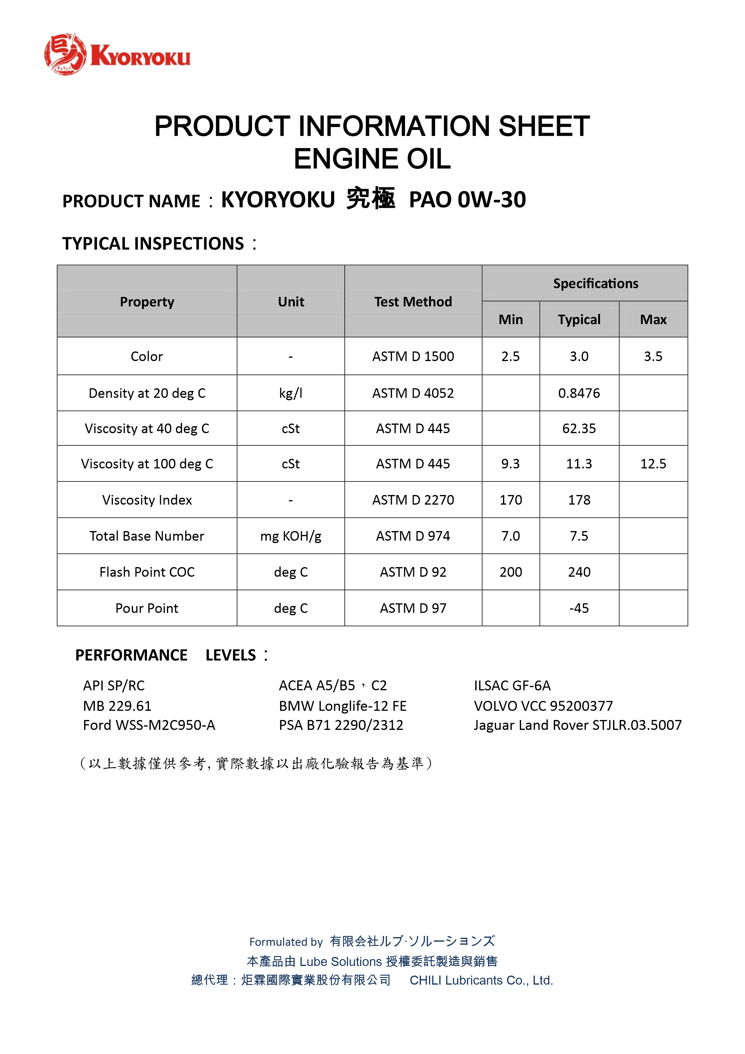 ♦符合 API SP 認證,有效解決低速早燃 ( LSPI ) 的問題,特別適合缸內直噴之汽油引擎