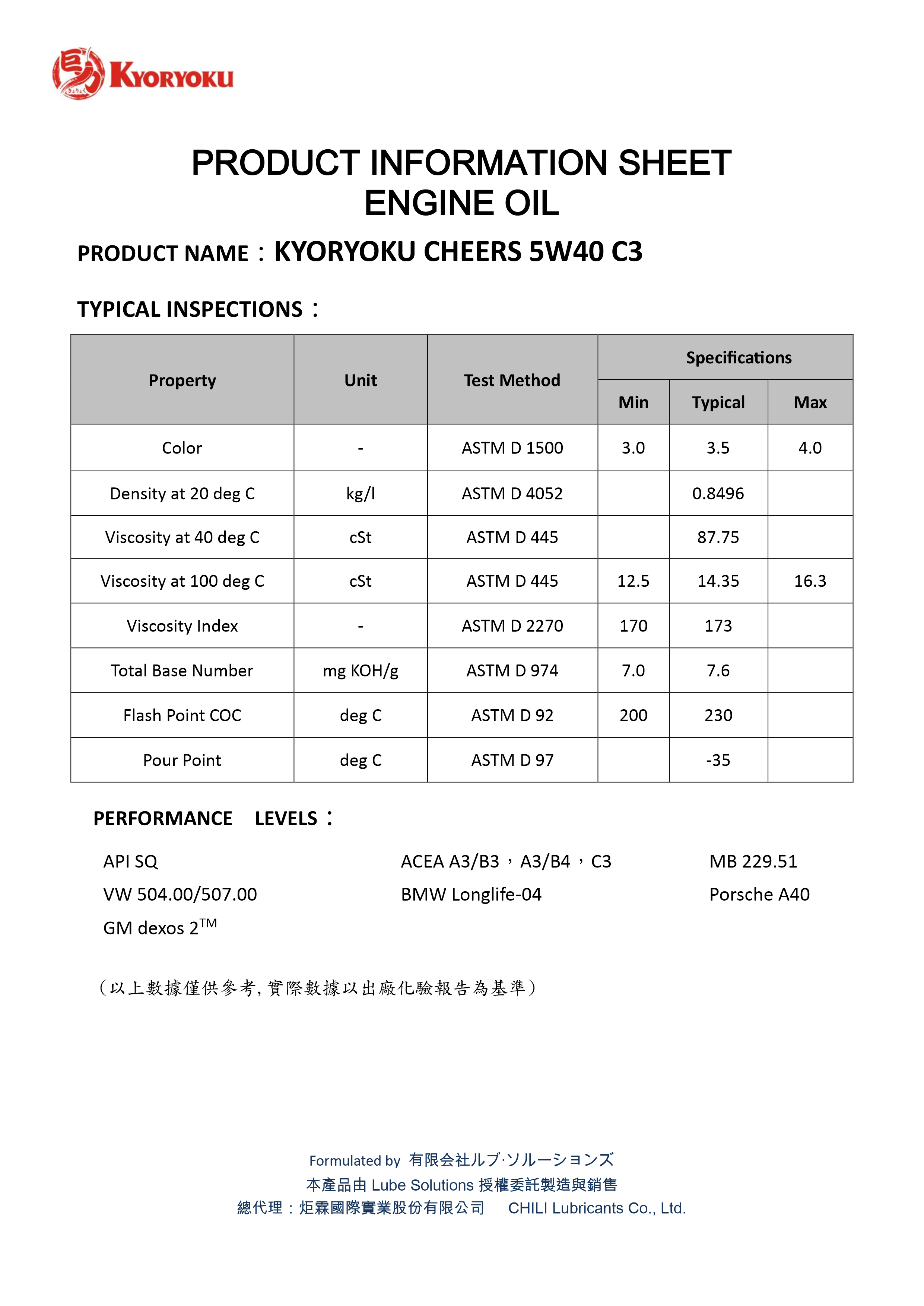 ♦特別適合各式最新高級汽柴油轎車引擎與要求使用 5W40 之 3.5 噸商用車引擎